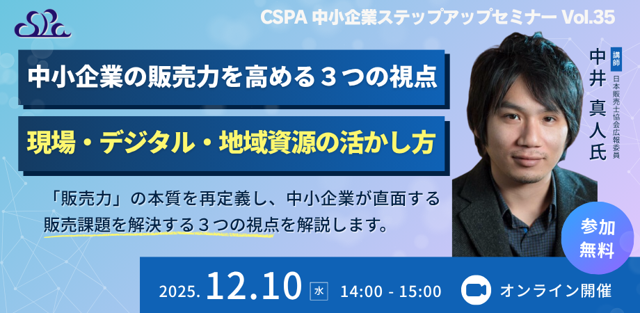 本セミナーでは、「販売力」の本質を再定義し、中小企業が直面する販売課題を解決する3つの視点を解説します。